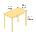 学習机、作業台、テーブルとしてお使いいただけるシンプルなデザインです。 【サイズ】 高さ101-110cm/奥行き71-80cm/横幅131-140cm 【材 質】 北欧パイン集成材 ※引き出し底板のみ 両面シナベニヤを使用 【引き出し】 1杯 ※脚部、お客様組立てとなります。組み立て方はこちら |